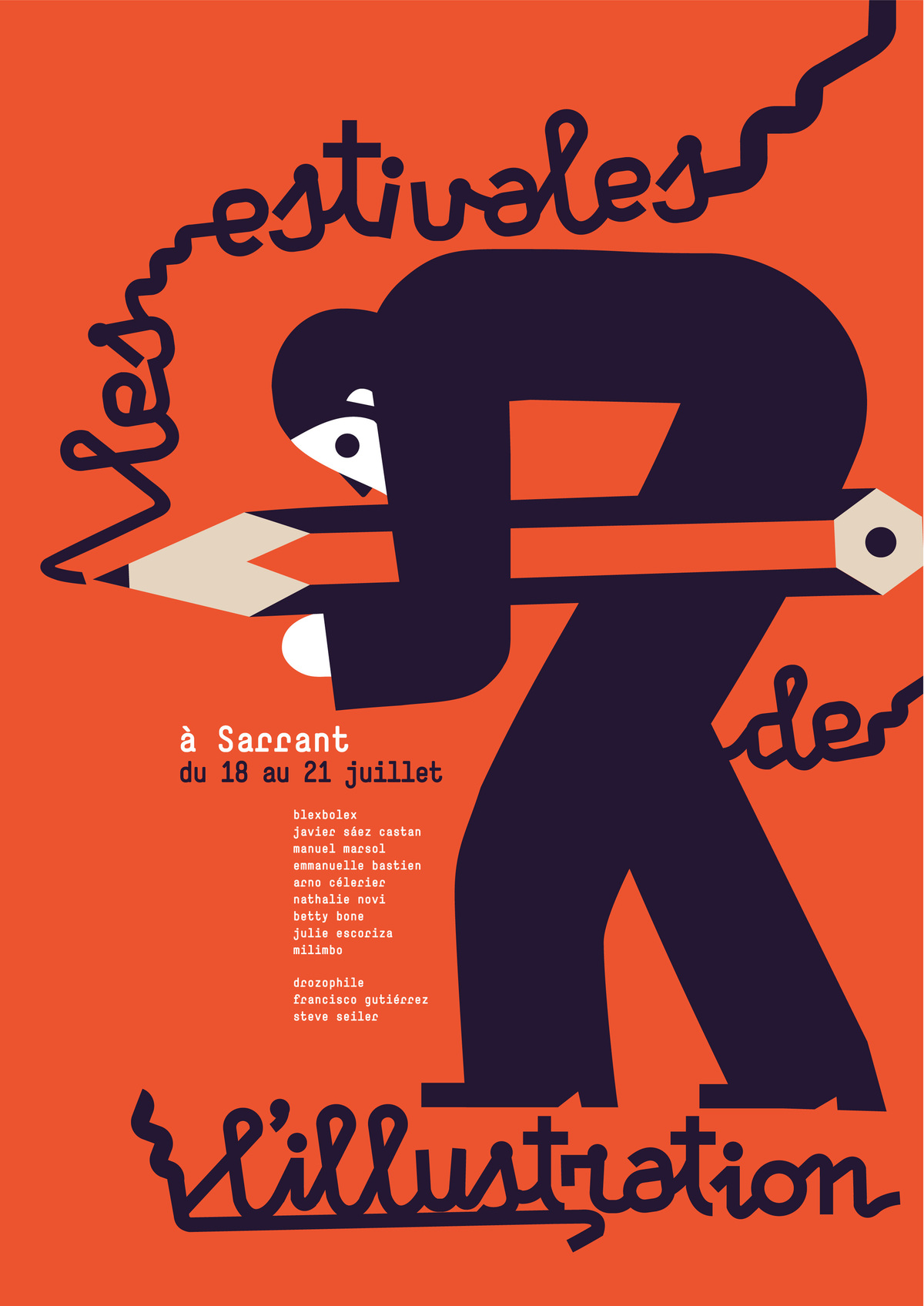 Diseño imagen, cartel y adaptaciones Festival ilustración. (Sarrant) Francia 2019.