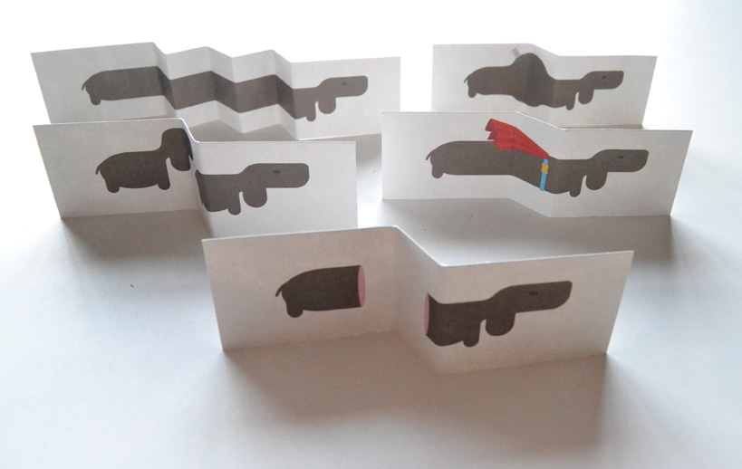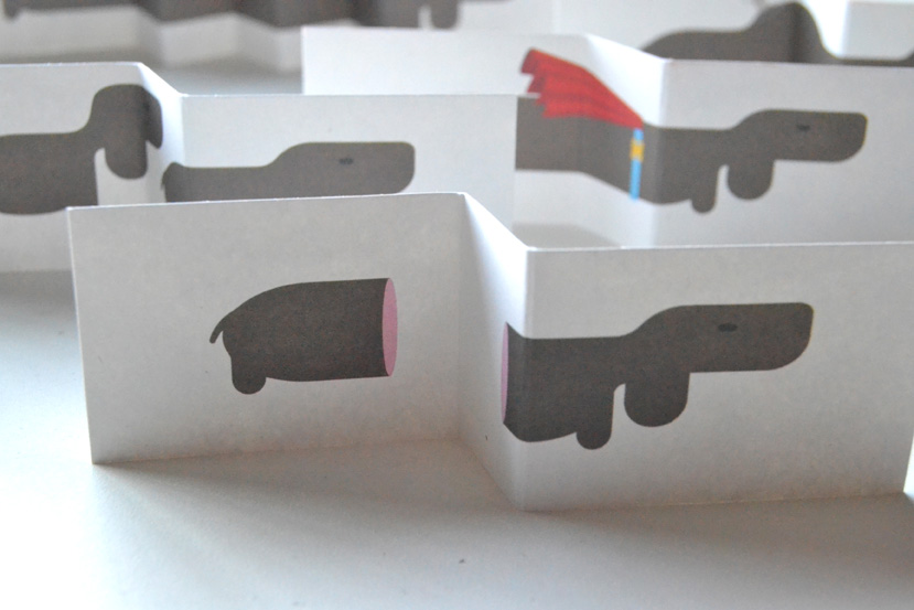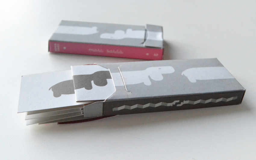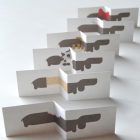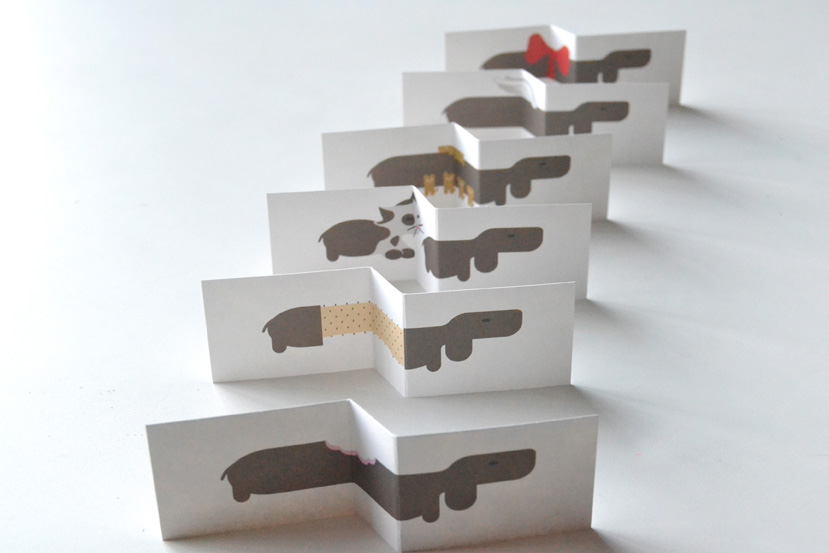 Esta cajita es un “Card Book”. Un pequeño librito de tarjetas plegadas. 6 lindos perritos esperando a que juguemos con ellos, que nos descubrirán inesperadas sorpresas al desplegarlos.