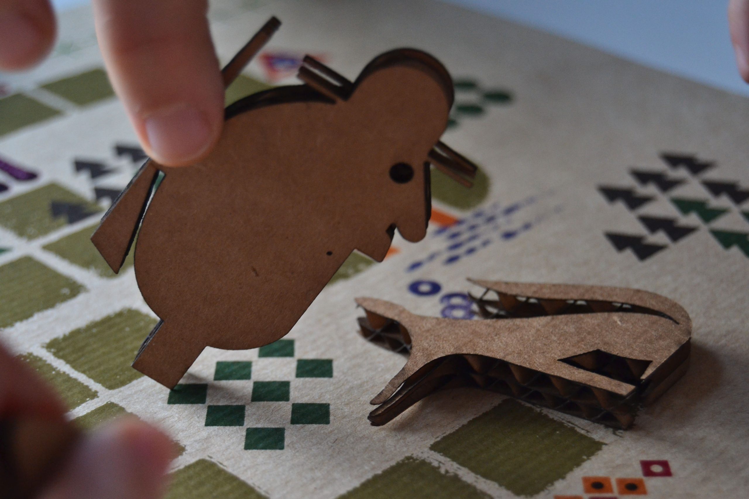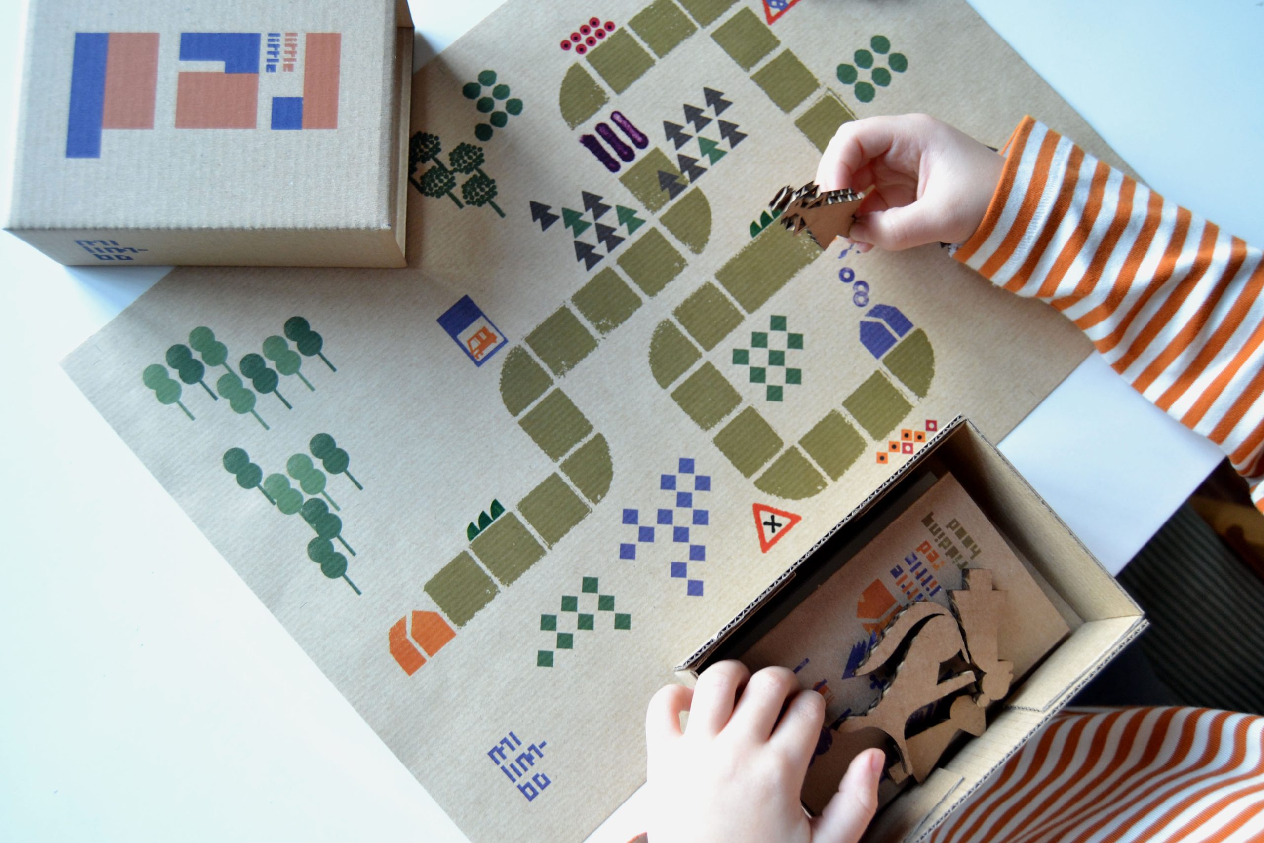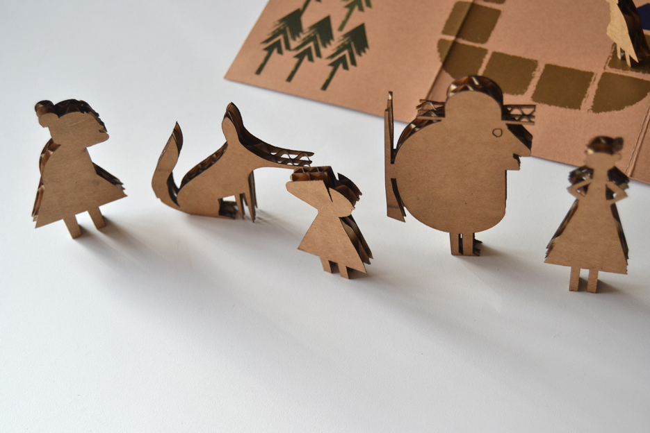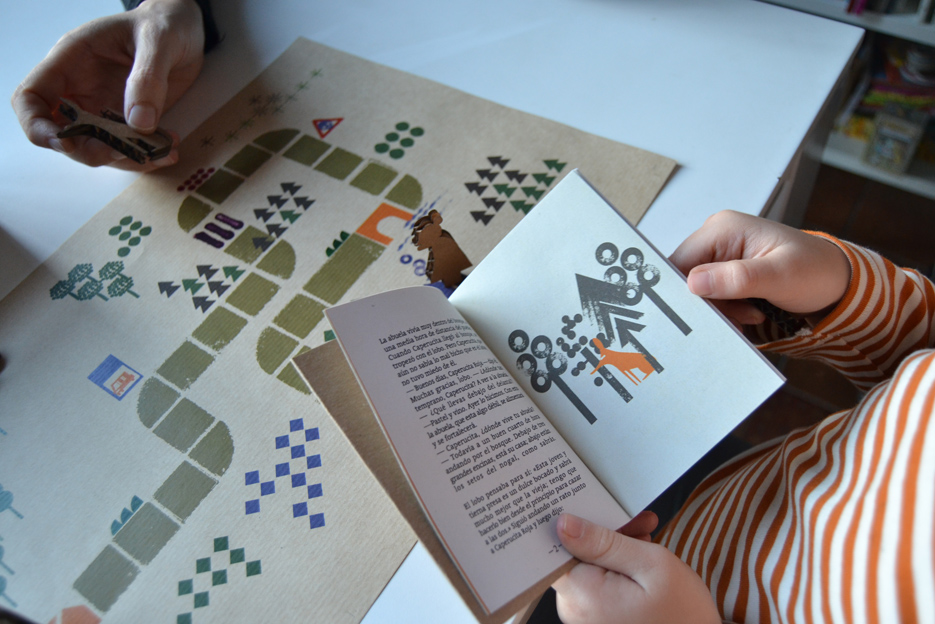 Un juego para contar mientras juegas al cuento de “Caperucita roja”. Dentro de una caja poco más grande que una caja de cerillas de cocina, duermen Caperucita, su madre, el lobo, la abuela y el cazador. Dales vida contando el cuento y moviendo los personajes una de las escenas y lugares que localizarás en el mapa. ¡Juega y crea nuevas historias!