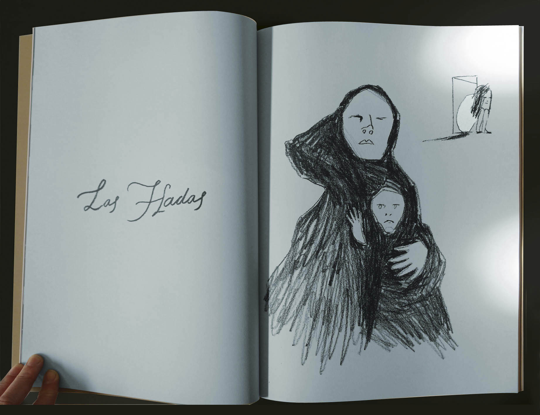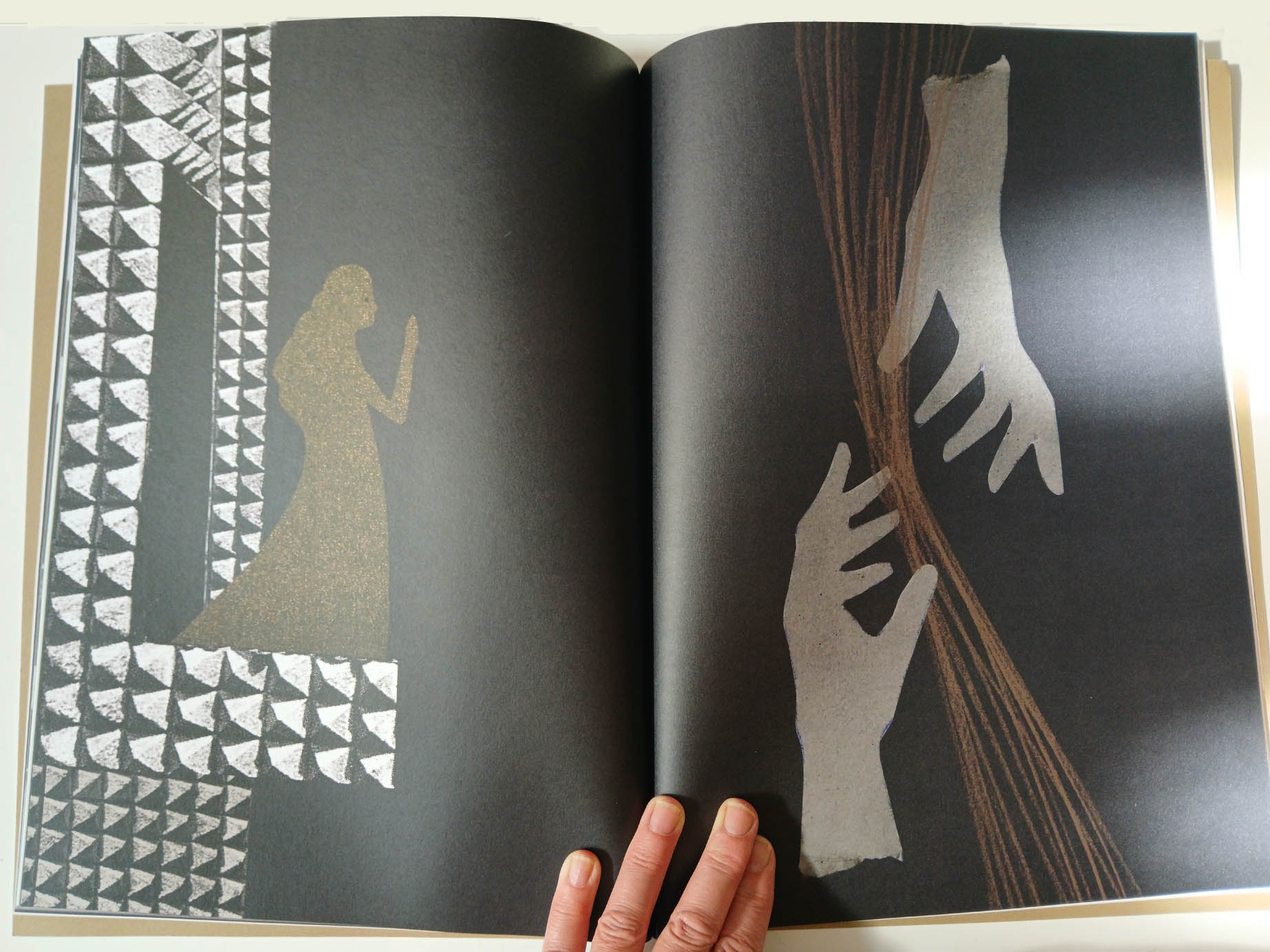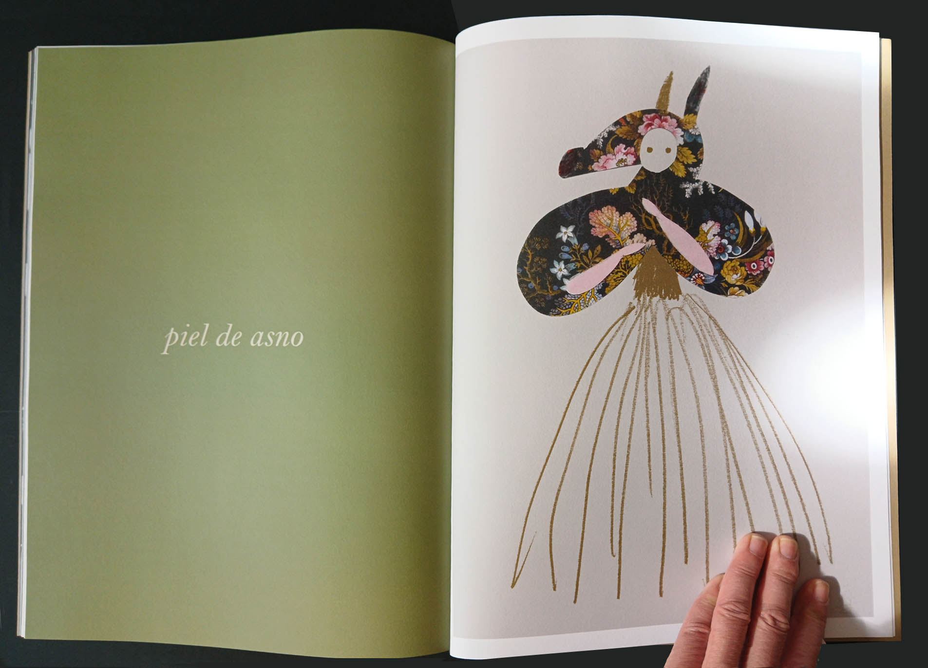 Este libro de imágenes está concebido para ser contado oralmente mientras se muestran sus ilustraciones y evoca algunos de los cuentos de “Mama Ganso”, también conocidos como “Cuentos de Mamá Oca” o “Cuentos del tiempo pasado”, compilados por Charles Perrault en 1697; aunque la versión original constaba de nueve relatos, en esta edición se incluyen Caperucita Roja, Las Hadas, Cenicienta, Barba Azul, El Gato con Botas y Piel de Asno. Se trata de un libro de gran formato (280 x 390 mm), impreso en papel mate de alta calidad Arena Rough de Fedrigoni, en el que cada cuento está ilustrado con un estilo distinto, grafito, collage, lápices de colores, estampación o escenarios de cartón. Ilustrar estos cuentos ha supuesto para nosotros un intenso trabajo de investigación, bocetos y pruebas, y sobre todo el reto de reinterpretar visualmente relatos clásicos que ya fueron ilustrados por grandes artistas que son referencia e inspiración, como Gustave Doré, Arthur Rackham, Wanda Zeigner, Kay Nielsen, Einar Neiman, Herbert Leupin, Takeo Takei o Bartolozzi. Nuestra propuesta reinterpreta pasajes que se han convertido en símbolos desde los grabados de Doré realizados en 1867, sin olvidar que ya en la primera edición de 1697 aparecieron ilustraciones de Antoine Clouzier, que muy probablemente influyeron en el propio Doré.